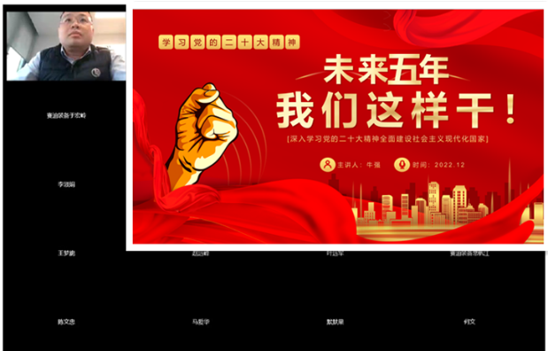 11月5日,裝備公司黨委召開(kāi)傳達(dá)學(xué)習(xí)貫徹黨的二十大精神工作部署會(huì)議,學(xué)習(xí)黨的二十大報(bào)告精神,部署學(xué)習(xí)貫徹工作,要求把學(xué)習(xí)貫徹落實(shí)黨的二十大精神作為做好今年四季度和明年各項(xiàng)工作的根本遵循,集全員智慧與合力推動(dòng)公司轉(zhuǎn)型發(fā)展。賽迪裝備黨委下屬三個(gè)黨支部迅速掀起學(xué)習(xí)熱潮,除“三會(huì)一課”、主題黨日等抓好原文學(xué)習(xí)外,利用學(xué)習(xí)強(qiáng)國(guó)、智慧黨建五礦網(wǎng)上黨校等平臺(tái)開(kāi)展“線上+線下”學(xué)習(xí),班子成員開(kāi)展主題宣講,黨員干部帶頭交流心得體會(huì),截至12月底,公司各載體共發(fā)布黨員、群眾、青年心得體會(huì)50余份。