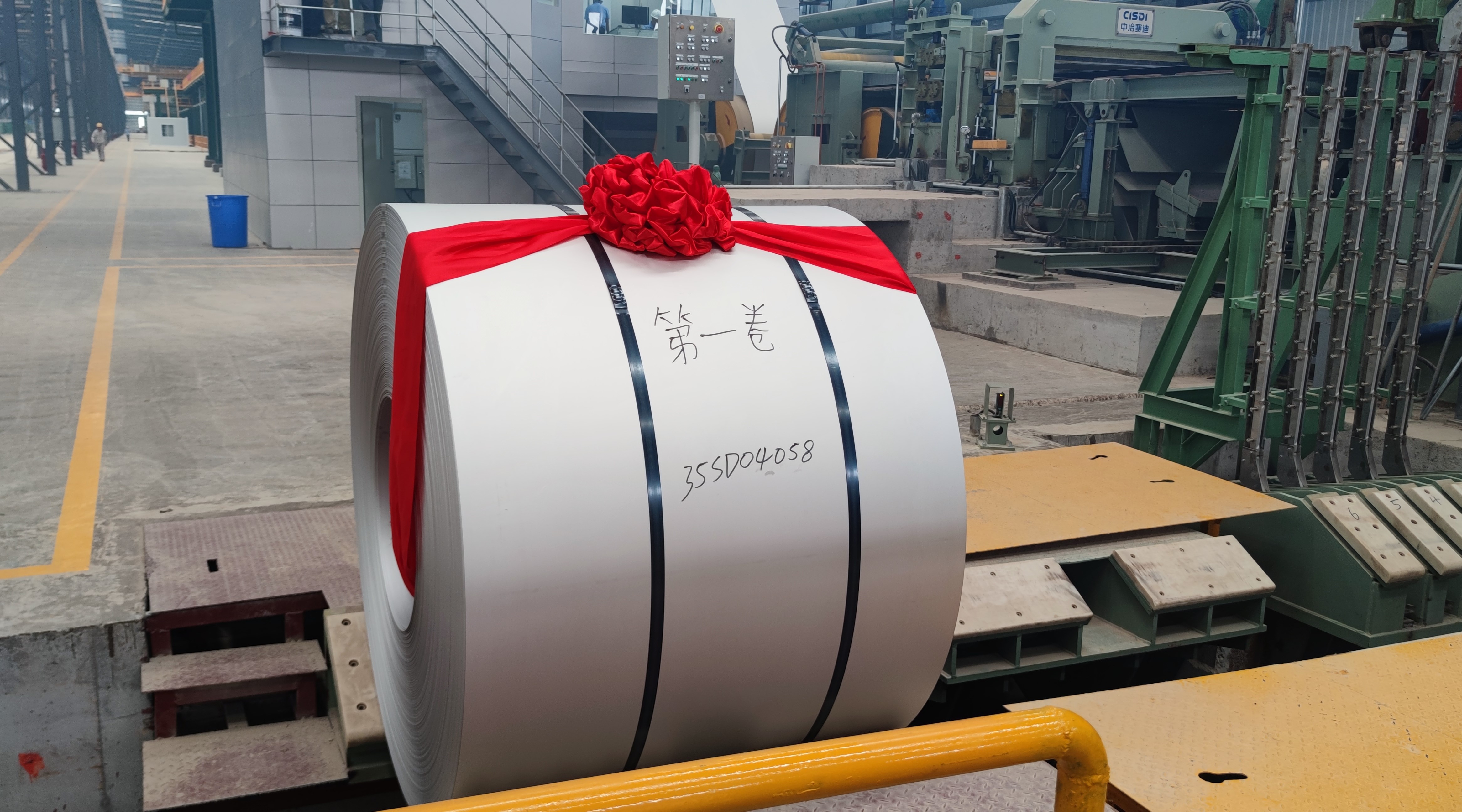 2023年6月7日上午10:30分,由中冶賽迪裝備聯(lián)合軋鋼與裝備事業(yè)部承擔(dān)設(shè)計(jì)和成套設(shè)備供貨的廣東新達(dá)新80萬噸不銹鋼退火酸洗線成功下線第一卷成品,正式進(jìn)入試生產(chǎn)階段。產(chǎn)線核心工藝段最高運(yùn)行速度可達(dá)120 m/min,是中冶賽迪裝備在不銹鋼處理線領(lǐng)域的又一次突破。