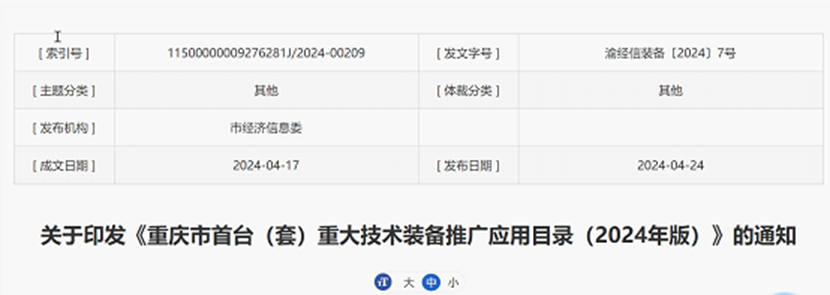 公司兩項新產(chǎn)品入選重慶市首臺(套)重大技術(shù)裝備推廣應(yīng)用目錄